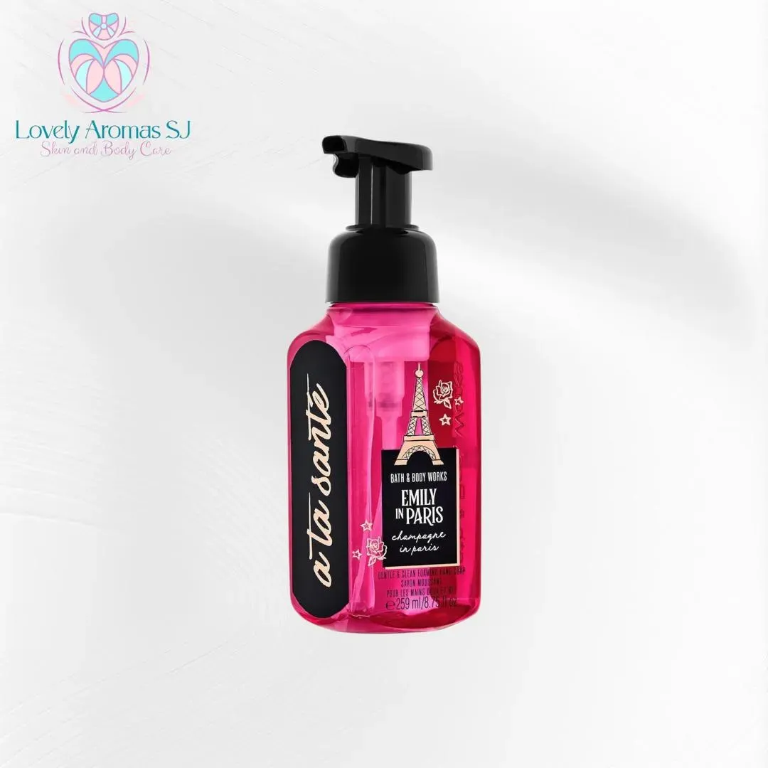 El jabón de Manos Champagne in Paris de Bath & Body Works tiene las siguientes notas de fragancia: champán espumoso, bayas de saúco y lirio de los valles.