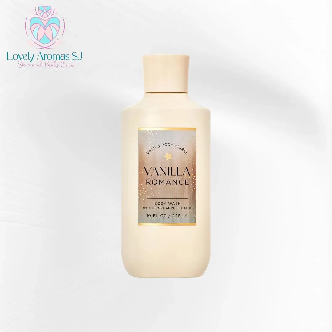 El Gel de Baño Vanilla Romance de Bath & Body Works deja tu piel con una sensación fresca, limpia y bellamente perfumada. Contiene notas de vainilla sensual, pétalos de rosa y almizcle suave.